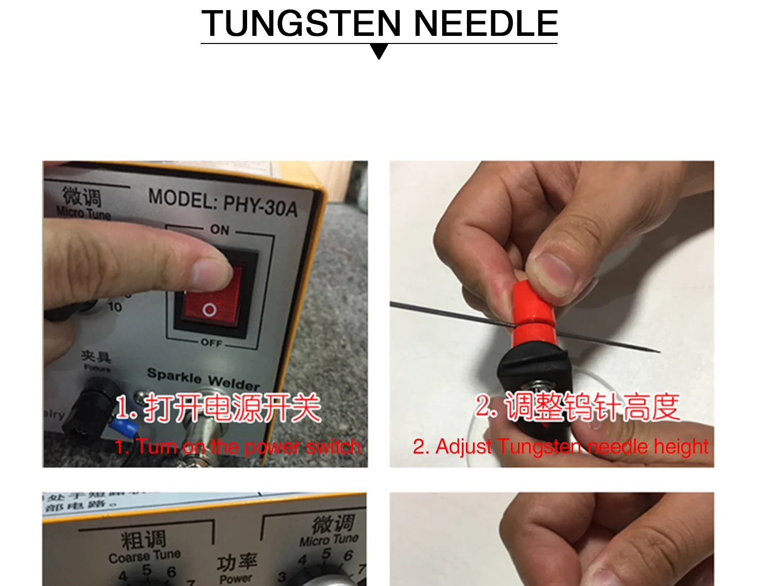 - Position the tungsten needle at a 0.5-1.0mm distance from the workpiece.